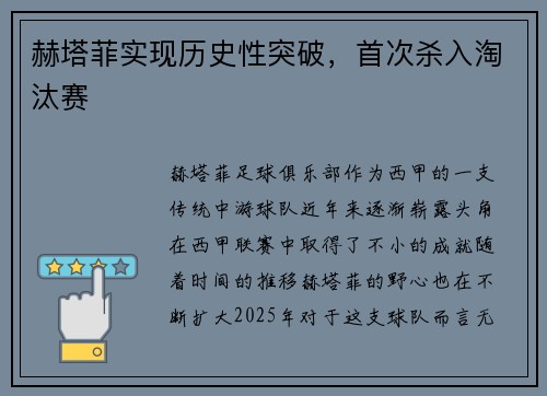 赫塔菲实现历史性突破,首次杀入淘汰赛